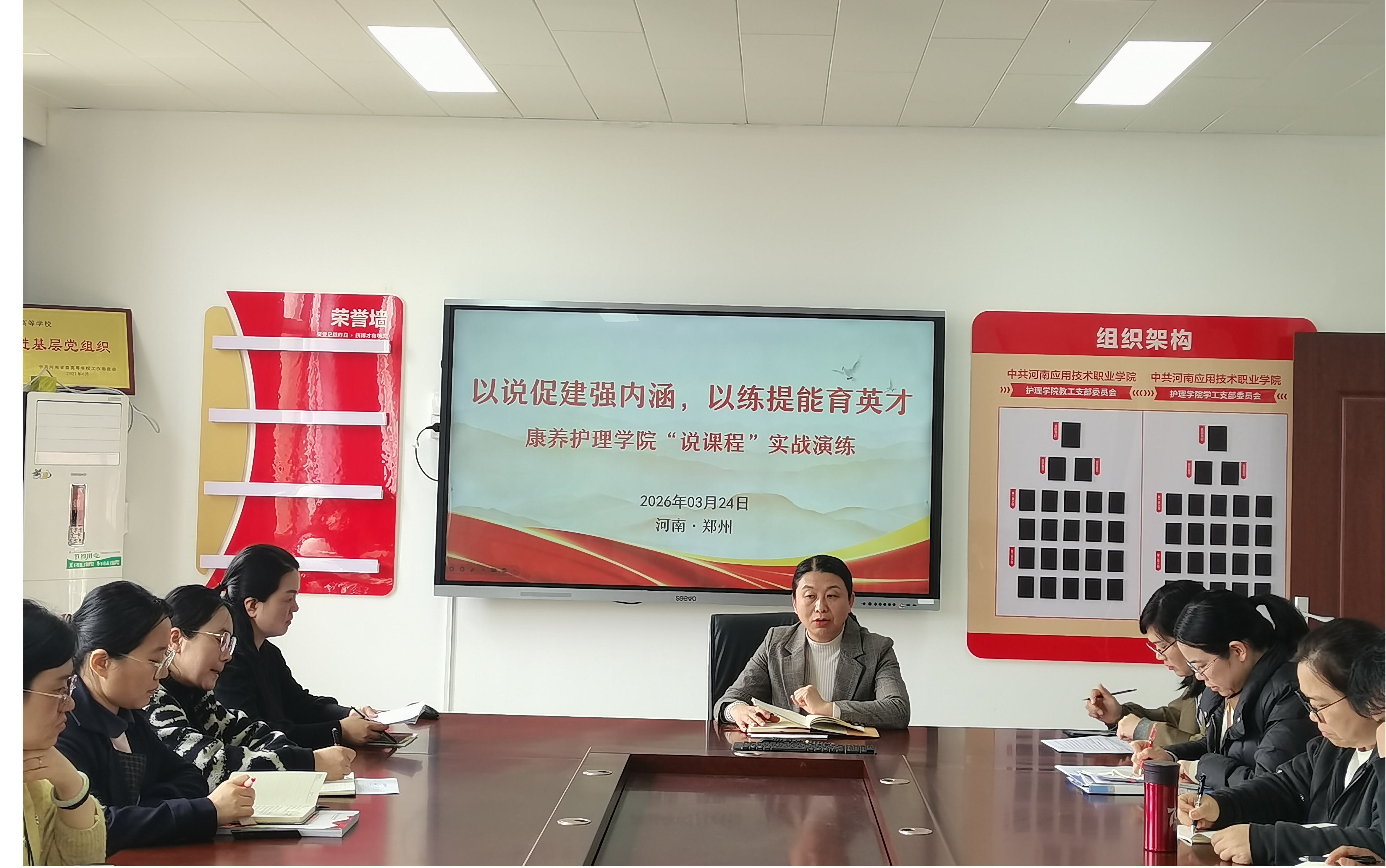 为稳步推进学校办学能力评价筹备工作,全面提升教师教学能力与课程建设水平,3月24日,康养世俱杯买球官网网站在办公楼515会议室举行“说课程”研讨活动。此次活动由康养世俱杯买球官网网站院长王风云主持,全体专兼职教师积极参与,共同营造了一场教学相长、互促共进的教研盛宴。