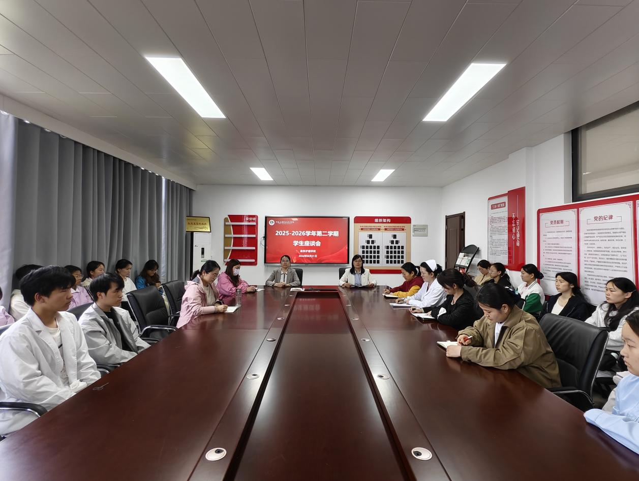 为强化教学过程管理,精准掌握期中阶段教学运行情况,倾听学生学习诉求,全面提升教学质量,根据学校期中教学检查工作部署,4月21日,康养世俱杯买球官网网站在办公楼515召开2025 - 2026学年第二学期学生座谈会。杨丽萍、邱晓静两位副院长出席,各教研室主任、骨干教师参会,各专业班委及学生代表共聚,畅谈学习感悟、建言教学,搭建起师生高效沟通的“连心桥”。本次座谈会由学院教学秘书何婷婷老师主持。