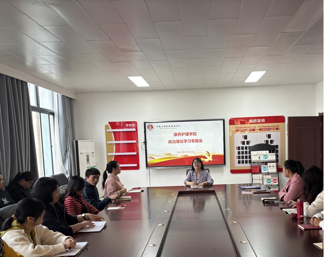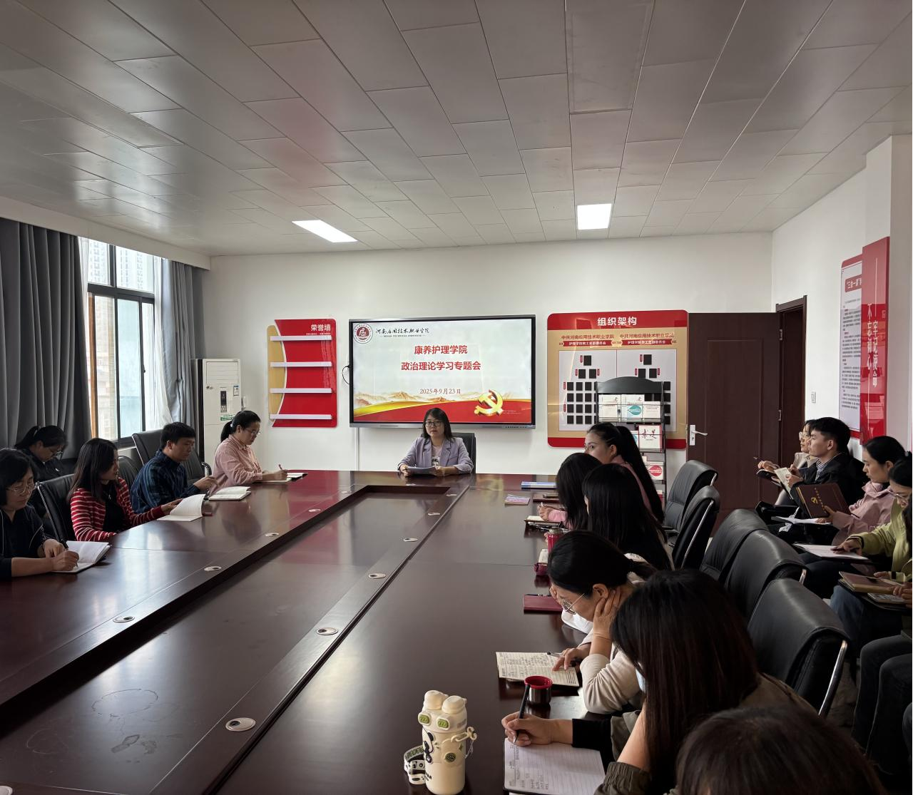 2025年9月23日下午,康养世俱杯买球官网网站全体教职工在办公楼515会议室开展政治理论专题学习,深入领会党的民族工作精神与法治建设要求,为推动学院高质量发展凝聚思想共识。会议由学院党总支副书记景淼主持,全体教职工通过集中学习与研讨交流,进一步提升政治素养与法治意识。