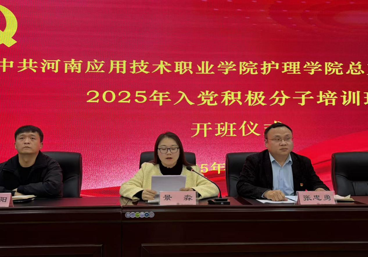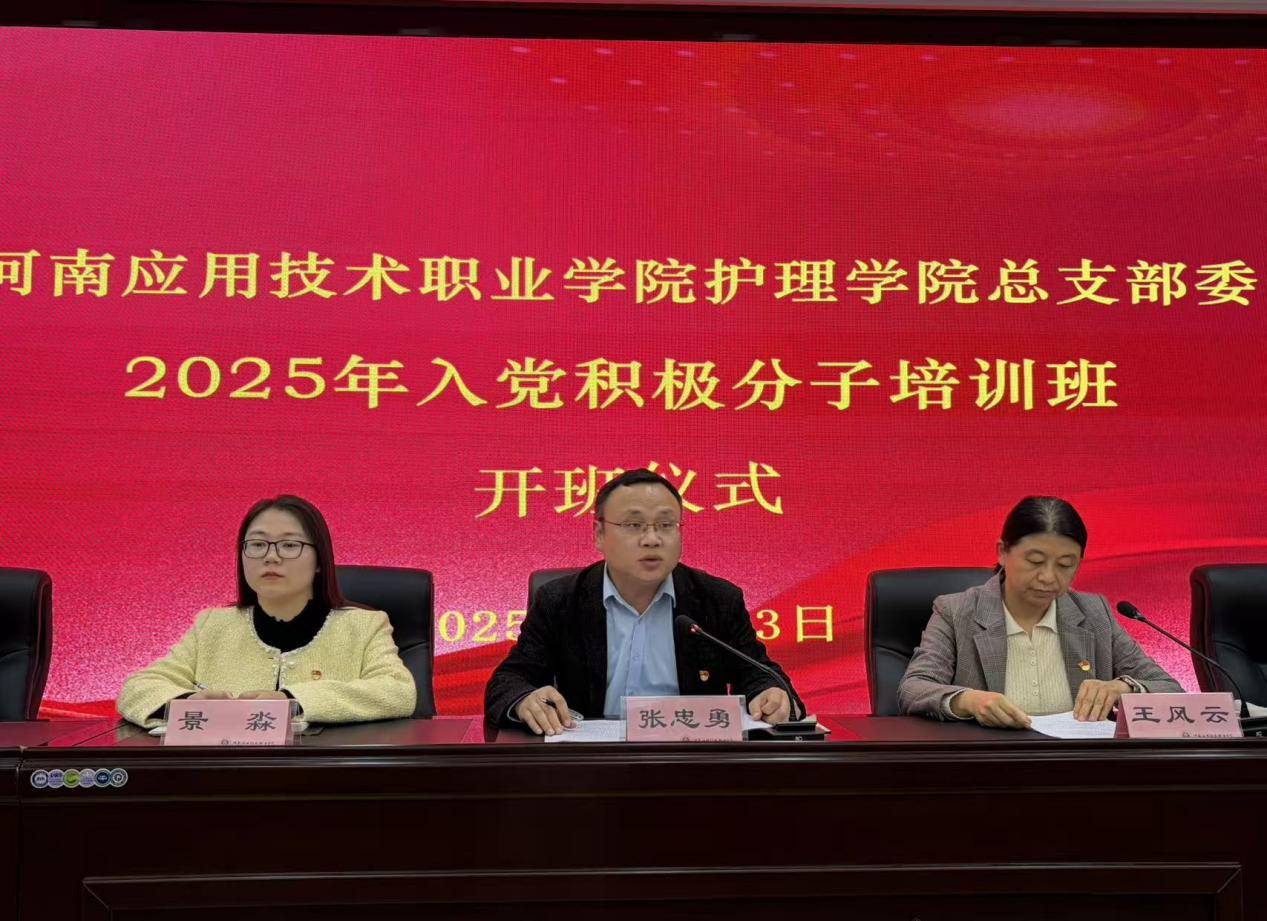 2025年11月13日,康养世俱杯买球官网网站2025年入党积极分子培训班开班仪式在C楼202会议室举行。学院党总支书记张忠勇、院长王风云、党总支副书记景淼、总支支委及2024级全体入党积极分子参加本次开班,会议由梁海洋主持。