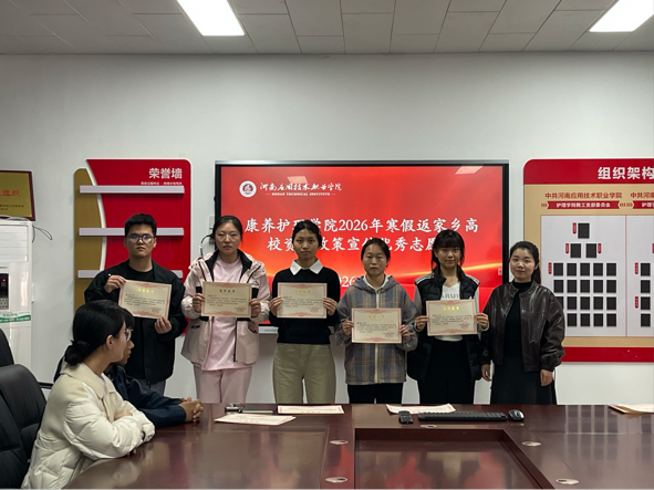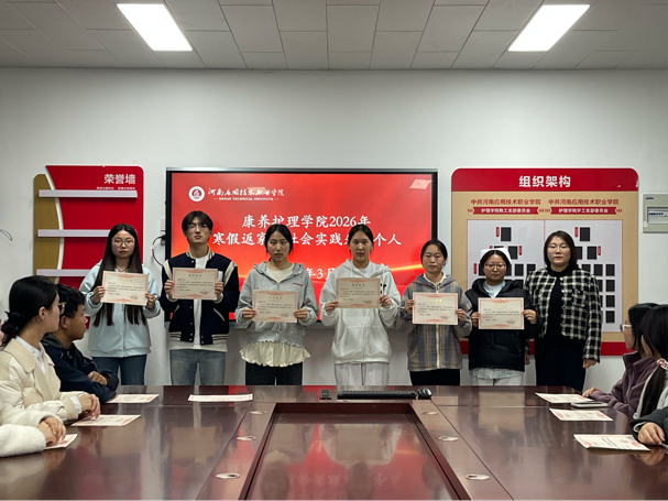 最后三位老师为先进个人颁发荣誉证书,此次表彰大会既是对寒假“返家乡” 社会实践工作的全面总结,更是对全院学子投身实践、服务社会的有力动员。未来,康养世俱杯买球官网网站将继续以实践育人为抓手,引导青年学子在服务家乡、奉献社会的广阔天地中锤炼品格、增长本领,以青春之我、担时代之责,书写新时代青年的奋进篇章。