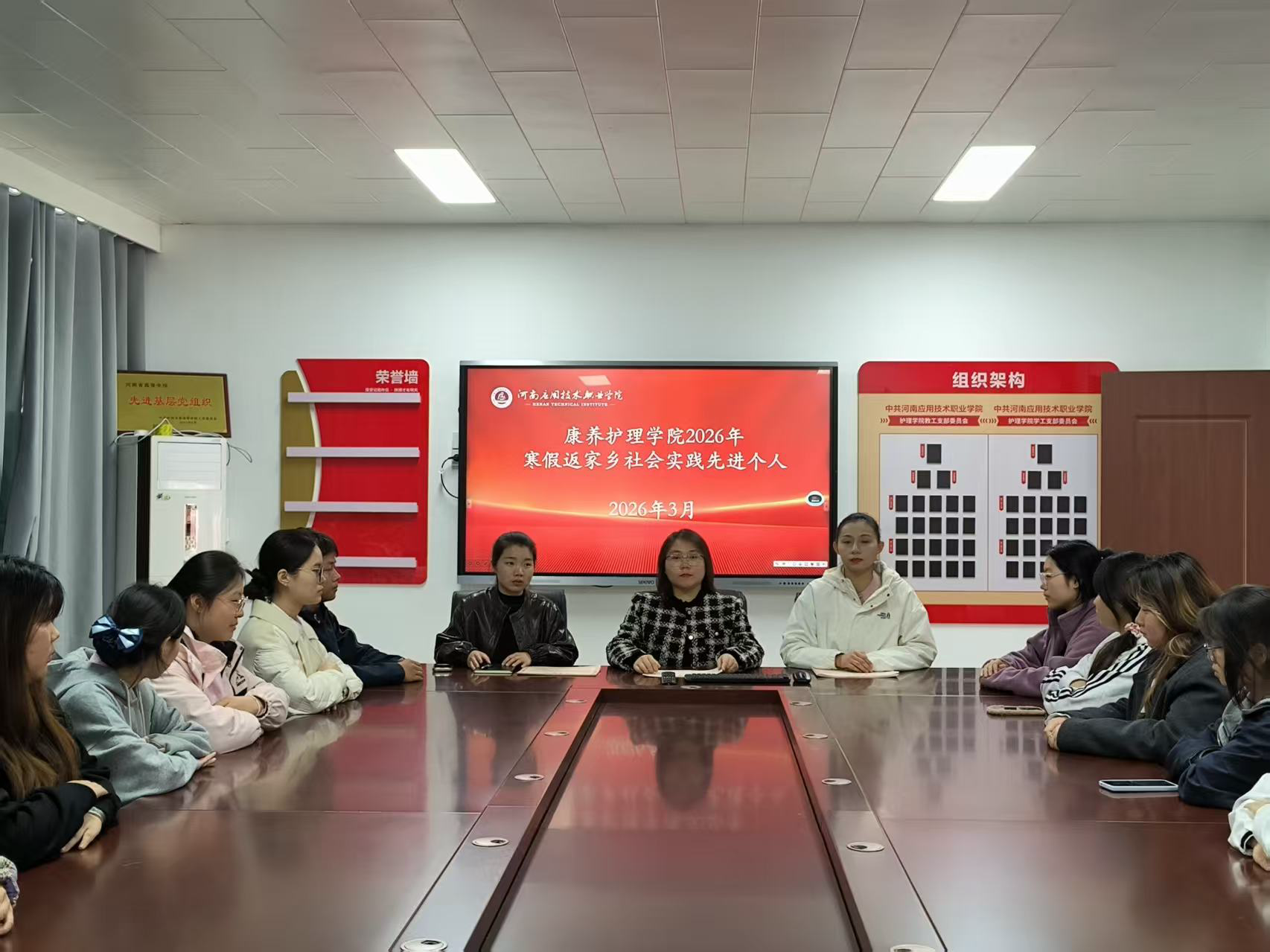 为全面总结学院2026年寒假“返家乡”社会实践活动成效,表彰先进典型、树立青春榜样、凝聚奋进力量,引导全院学子以实践践行初心、以实干服务家乡,3月24日,康养世俱杯买球官网网站寒假“返家乡”社会实践表彰会议在A515会议室召开。学院党总支书记景淼、团总支书记张萌、学院资助专员姚颖及部分学生代表参加。