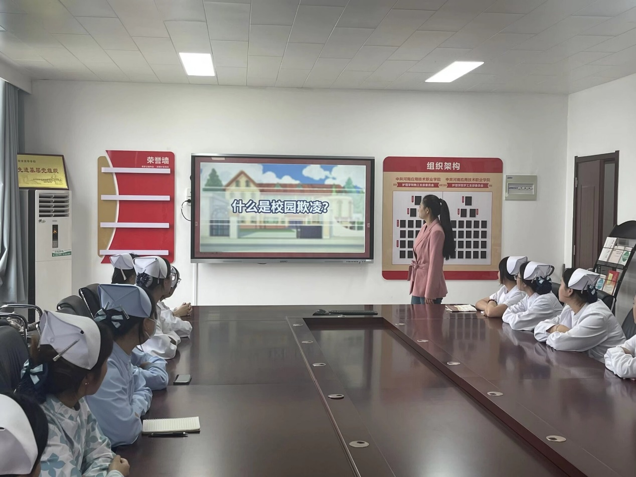 为筑牢校园安全防线,护航青年学生身心健康,营造文明和谐的育人环境,4月13日,康养世俱杯买球官网网站团总支书记张萌以“抵制校园霸凌 反对校园暴力”为题为学院学生讲授主题团课。