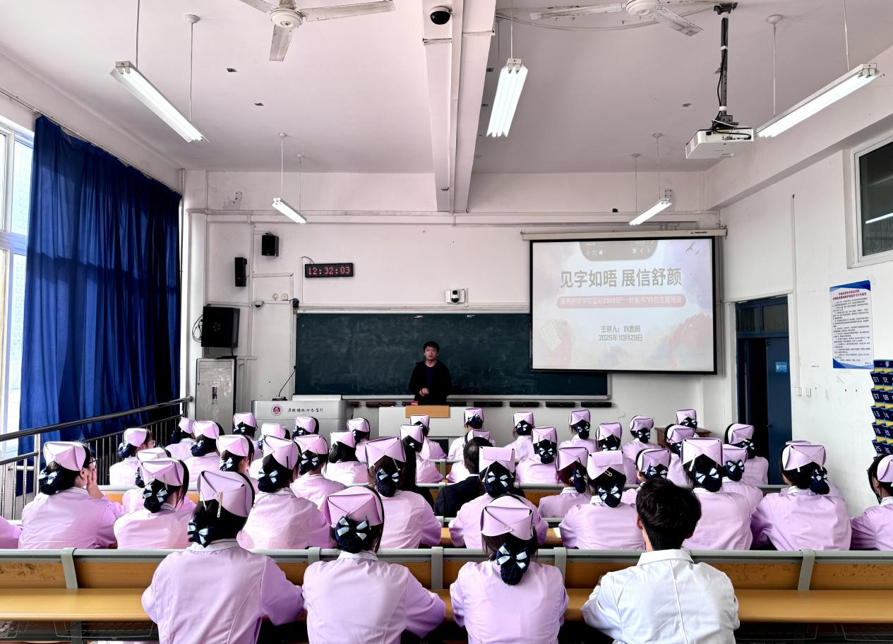 班会伊始,刘思阳以“见字如晤,展信舒颜”为引,结合康养世俱杯买球官网网站的“人文关怀”的核心素养,阐释了家书在维系情感、传递思念中的独特价值。班会上向同学们分享了夏明翰写给母亲的家书及赵一曼写给儿子的手书,通过逐字解读红色家书里的赤子之心与家国大义,让同学们深刻体会到革命先辈在生死考验前的家国情怀与责任担当,现场氛围庄重而真挚。